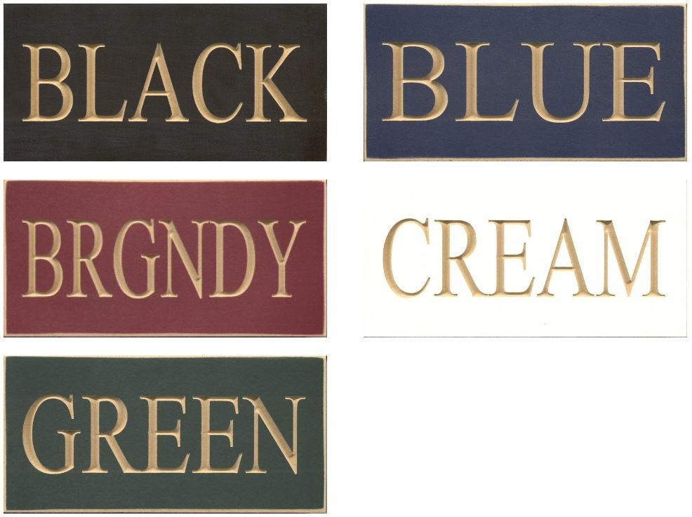 burgundy, cream, and green), the text is v-carved through the paint